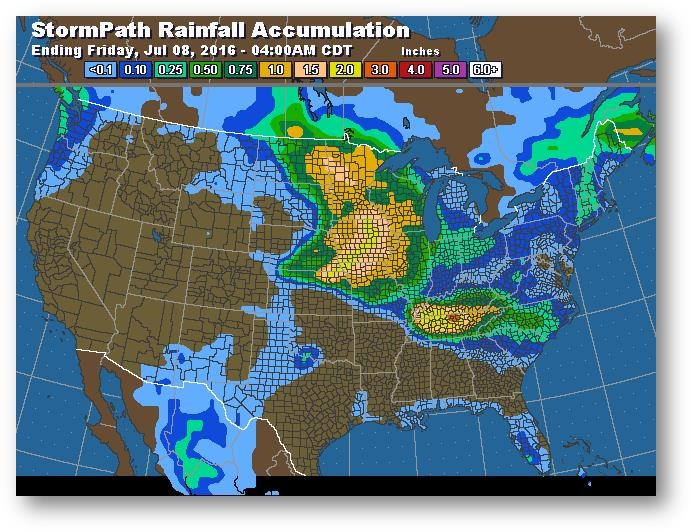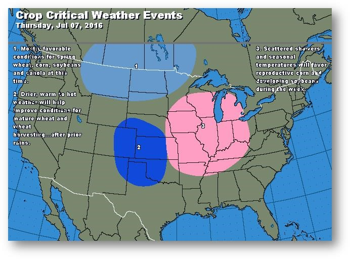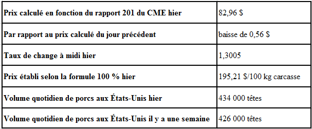 Les prévisions de météo favorable et de précipitations supérieures à la normale au cours des deux prochaines semaines continuent de pousser le marché à la baisse. L'évaluation du rendement avoisine maintenant les 170 boisseaux par acre, ce qui limite tout redressement à long terme. Les exportations de drêche sèche en mai ont été de 1 063 000 tonnes comparativement à 883 000 pour avril et 1 171 000 il y a un an. Les exportations vers la Chine ont été de 292 000 tonnes, ce qui est bien inférieur aux 865 000 tonnes en mai dernier. On s'attend à ce que les données relatives à l'éthanol aujourd'hui fassent état d'une légère diminution de la production par rapport à la production considérable de la semaine précédente à 1 003 000 barils/jour. Les stocks devraient aussi être en baisse si l'on se fie à la tendance saisonnière de diminution de la production et d'augmentation de la demande d'essence. Il semble peu probable de voir une hausse des prix du maïs en raison des prévisions météo encourageantes à court terme, ce qui place le maïs en bonne position pour le reste de l'été.