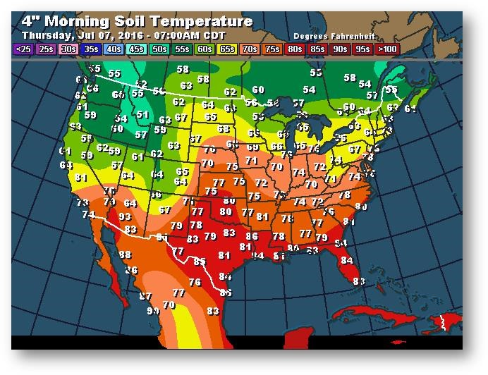 Température du sol en matinée à une profondeur de 4 pouces (degrés Farenheit)