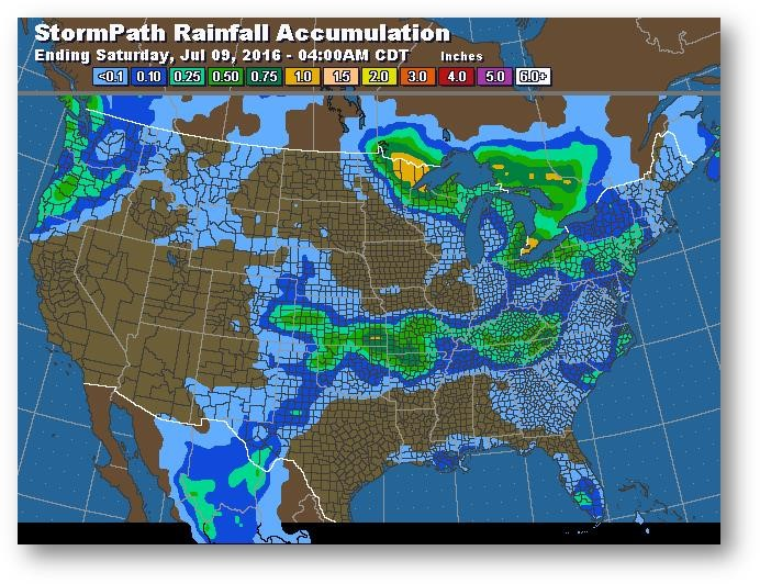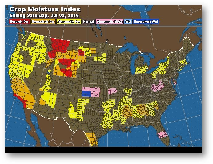 Les conditions météo demeurent le centre d'attention malgré la diminution surprise de la production brésilienne. Si le rendement est près de la ligne de tendance, les États-Unis auraient des stocks de report de plus de deux milliards de boisseaux et la diminution au Brésil n'aura pas une grosse incidence. On attend toujours des températures supérieures à la normale et des précipitations dans la majeure partie du Midwest au cours des deux prochaines semaines.