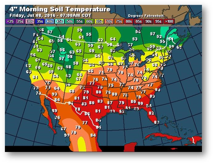 Température du sol en matinée à une profondeur de 4 pouces (degrés Farenheit)