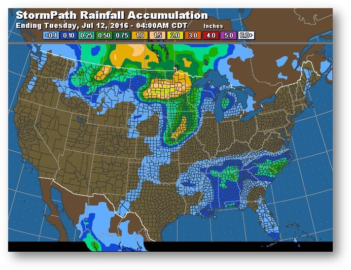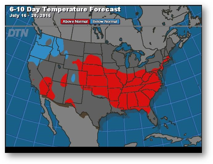Les prix ont fait un bond lors de l'ouverture de la séance de nuit dimanche en raison des inquiétudes grandissantes concernant les températures chaudes et les précipitations sous la normale dans les prévisions à court terme. Les fonds continuent de liquider leur position longue; le rapport COT de vendredi indique que les fonds gérés détenaient 86 000 contrats en date du mardi 5 juillet. Il s'agit d'une diminution de 82 000 contrats par rapport à la semaine précédente et de 182 000 contrats par rapport à la plus importante position dans la semaine s'étant terminée le 14 juin.