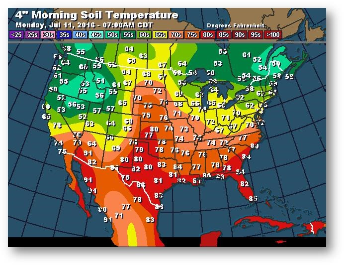 Température du sol en matinée à une profondeur de 4 pouces (degrés Farenheit)