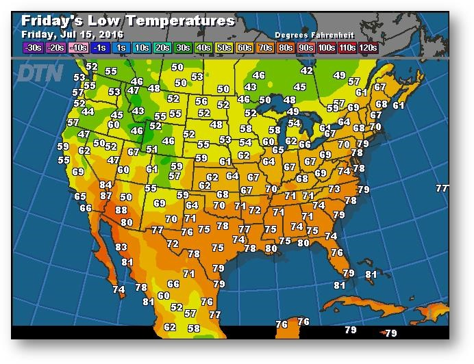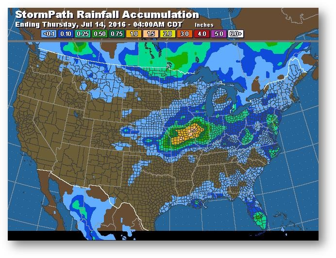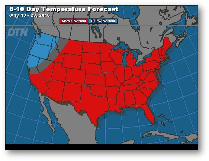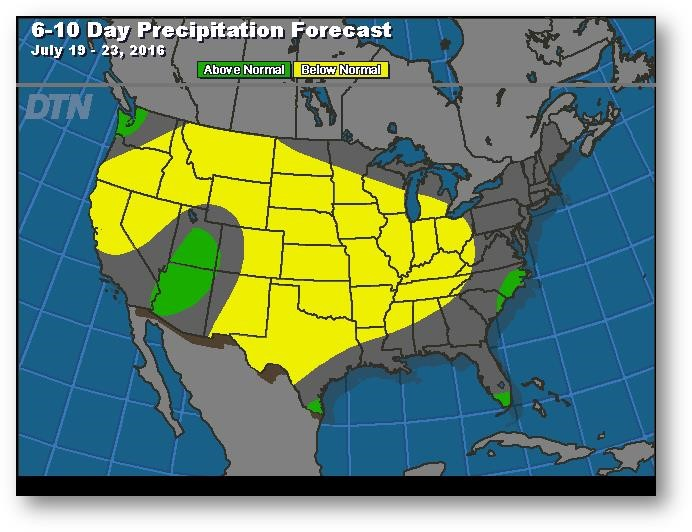 Au cours de la nuit, les prix ont considérablement grimpé et atteint leurs niveaux les plus haut depuis le 30 juin même si la majeure partie du Midwest a reçu des précipitations tant attendues hier. Le marché semble s'intéresser particulièrement au temps chaud et sec prévu pour les horizons 6-10 et 8-14 jours; les prix ont ainsi monté de plus de 0,20$ jusqu'à maintenant cette semaine.