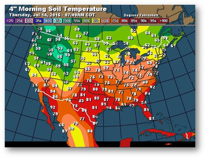 Température du sol en matinée à une profondeur de 4 pouces (degrés Farenheit)