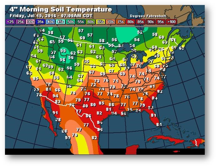 Température du sol en matinée à une profondeur de 4 pouces (degrés Farenheit)