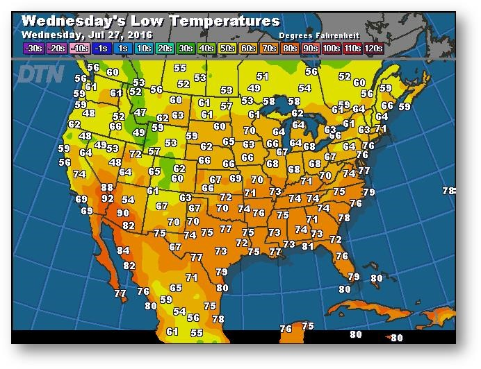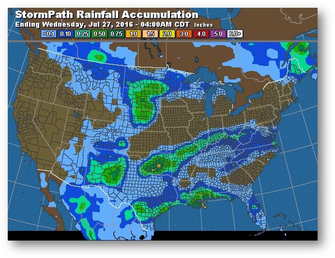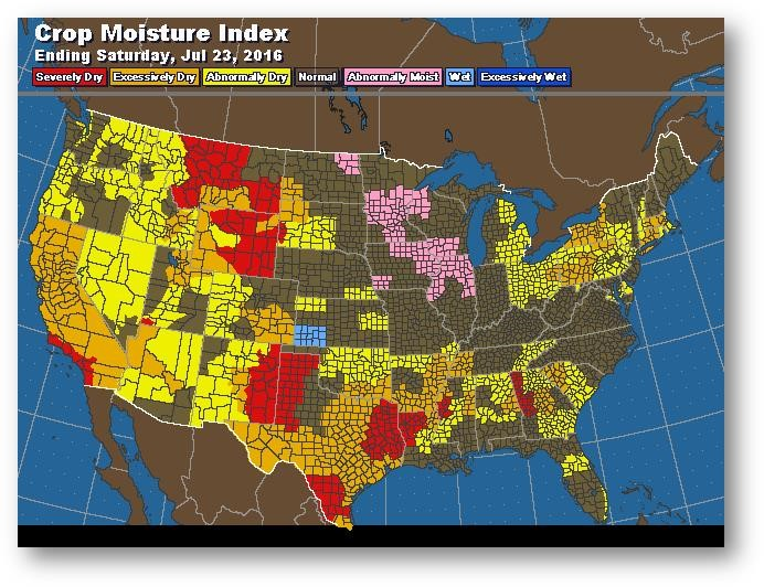 Hier le marché a été à deux côtés et les contrats à terme ont difficilement clôturé en hausse. Tôt dans la séance, il semblait que le revirement de vendredi se poursuivrait, mais les prévisions météo favorables ont remis les choses en place. L'évaluation des cultures n'a pas changé avec un résultat de 76% dans la catégorie bon/excellent comparativement à 70% il y a un an. Les inspections à l'exportation ont été de 1,31 million de tonnes, ce qui correspond aux attentes. Le marché semble de plus en plus confortable avec un rendement près de 170 boisseaux/acre; la production 2016-2017 serait record. Il faudra peut-être attendre quelques semaines pour confirmer les conditions météo favorables pour août avant de tester les creux de 2014 à 3,1825$ et ensuite 3$.