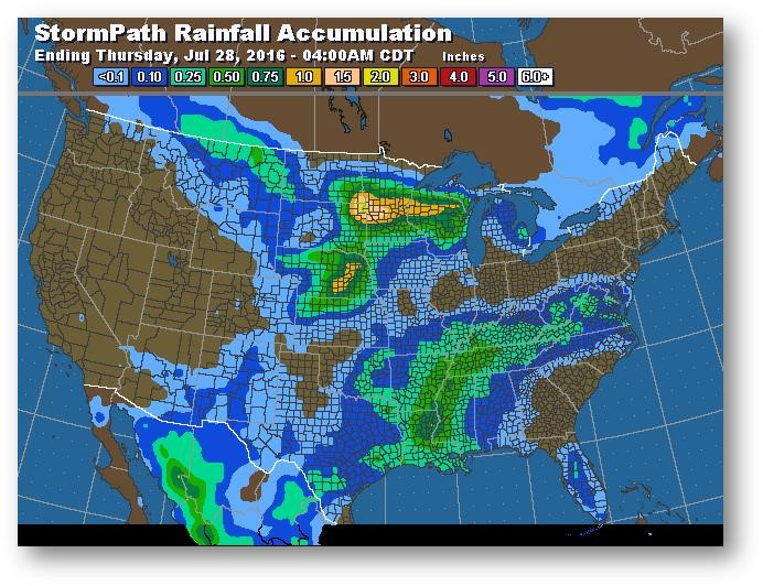 Les prix restent au neutre; les contrats à terme ont clôturé en légère baisse hier, coincés entre la faiblesse dans le blé et le raffermissement dans le soja. Aussi, aucune nouvelle fraiche. Les conditions météo s'annoncent favorables sur un horizon de 6-10 jours avec des températures supérieures à la normale dans la majeure partie de la Corn Belt et de bonnes précipitations.