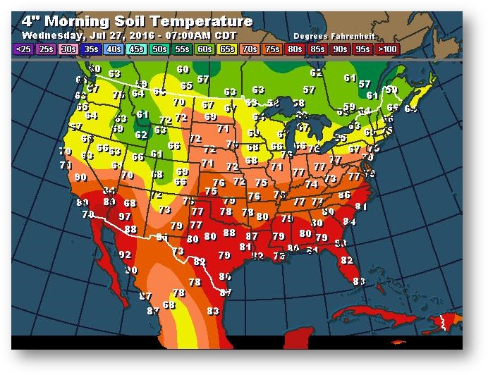 Température du sol en matinée à une profondeur de 4 pouces (degrés Farenheit)