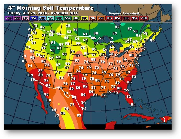 Température du sol en matinée à une profondeur de 4 pouces (degrés Farenheit)