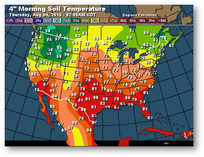 Température du sol en matinée à une profondeur de 4 pouces (degrés Farenheit)
