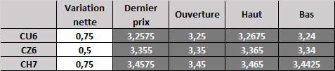 Évolution du prix calculé en fonction du rapport 201 du CME : baisse prévue de