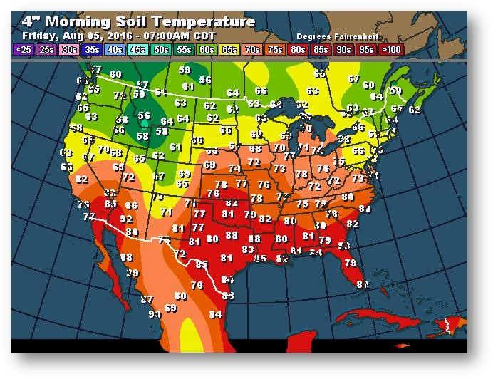 Température du sol en matinée à une profondeur de 4 pouces (degrés Farenheit)