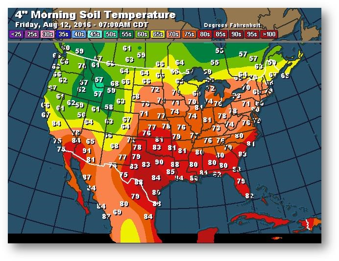 Température du sol en matinée à une profondeur de 4 pouces (degrés Farenheit)