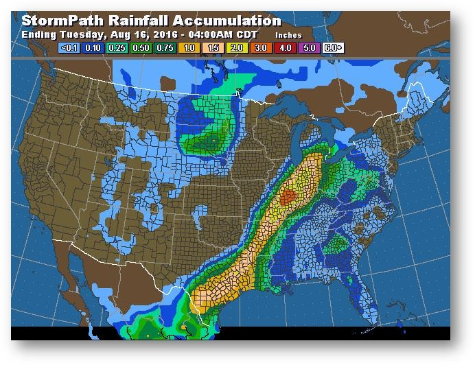 Au cours de la nuit, les prix se sont raffermis sur la poursuite des achats après la clôture élevée vendredi. Évidemment, tout le marché ne parle que du rapport du USDA sur l'état de l'offre et de la demande et de la prévision record d'un rendement de 175,1 boisseaux/acre, ce qui était bien supérieur aux attentes de 170,6 bpa. La production totale pour 2016-2017 est donc évaluée à un record de 15,153 millions de boisseaux et les stocks de report sont estimés à 2,409 milliards de boisseaux. Du côté de la demande, l'alimentation a été revue à la hausse de 175 millions de boisseaux et les exportations de 125 millions de boisseaux, mais ça n'a pas été suffisant pour compenser l'effet de la révision du rendement. Les chiffres sont donc négatifs et les prix ont d'abord fléchi, mais sont finalement remontés aux niveaux précédant la publication du rapport. Des stocks de fin d'année près de 2,5 milliards de boisseaux et un rapport stocks/utilisation à 16,6% indiquerait une chute sous 3$ et peut-être un test de 2,50$, mais le marché ne semble pas prêt à croire à la possibilité d'un rendement de 175 bo/acre. Nombreux sont ceux qui croient que cela aura été la plus importante évaluation publiée. Vendredi, le rapport COT a également été publié; on y indique que les fonds continuent de renforcer leur position nette courte. Les fonds gérés détenaient une position nette courte de 141 000 contrats en date du mardi 9 août, soit une augmentation de 34 000 contrats par rapport à la semaine précédente. Les prévisions météo continuent d'être favorables. Sur un horizon de 8-14 jours, les températures devraient refroidir et le temps être moins sec.