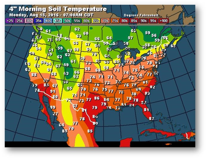 Température du sol en matinée à une profondeur de 4 pouces (degrés Farenheit)