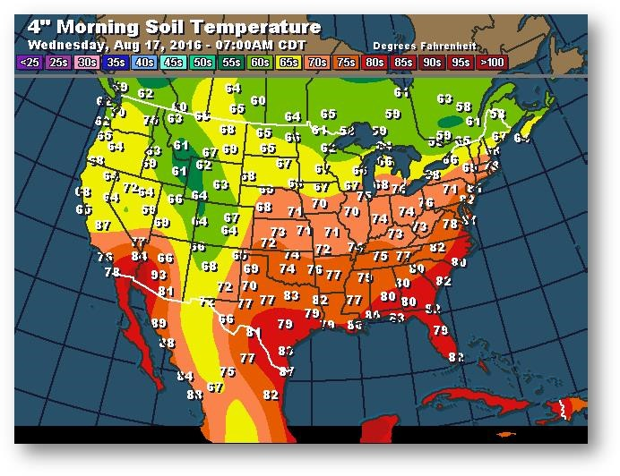 Température du sol en matinée à une profondeur de 4 pouces (degrés Farenheit)