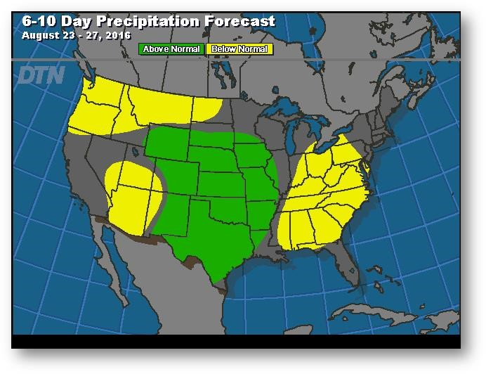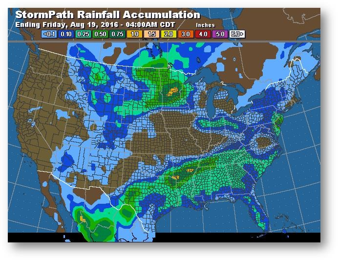 Hier, les contrats à terme ont clôturé en hausse pour une quatrième séance consécutive puisque le marché continue de douter de l'évaluation du rendement de 175,1 boisseaux/acre par le USDA. La tournée des cultures ProFarmer débute la semaine prochaine, ce qui permettra d'obtenir d'autres données à des fins de comparaison. Autrement, pas de nouvelles fraiches. Les prévisions météo demeurent favorables pour les dernières étapes de croissance des cultures; températures plus fraiches et précipitations supérieures à la normale d'ici fin août et début septembre. La publication de la production d'éthanol a créé toute une surprise hier à 1 029 000 barils/jour comparativement à 1 018 000 la semaine précédente, égalant le record de production hebdomadaire. Les stocks d'éthanol ont légèrement diminué. Les ventes à l'exportation seront publiées ce matin. Des ventes hebdomadaires de 765 900 tonnes sont nécessaires pour atteindre l'évaluation du USDA pour 2016-2017. Le total actuel correspond à 17,4% de cette évaluation, derrière la moyenne de 21,9% sur cinq ans.