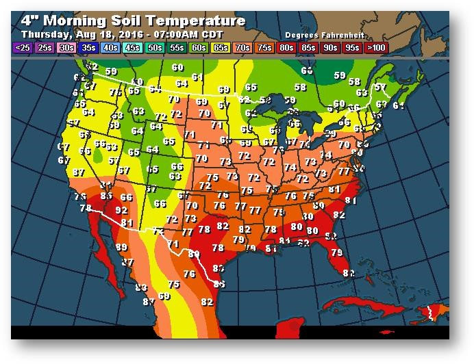 Température du sol en matinée à une profondeur de 4 pouces (degrés Farenheit)