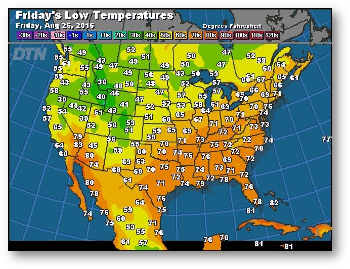 Prévisions des températures les plus basses (degrés Farenheit)