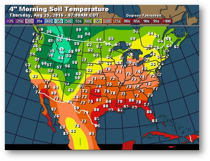 Température du sol en matinée à une profondeur de 4 pouces (degrés Farenheit)
