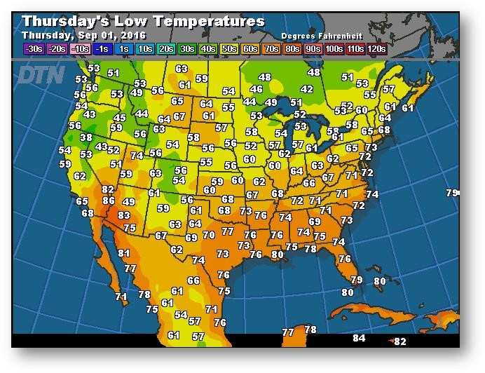 Prévisions des températures les plus basses (degrés Farenheit)