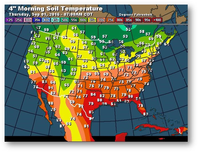 Température du sol en matinée à une profondeur de 4 pouces (degrés Farenheit)