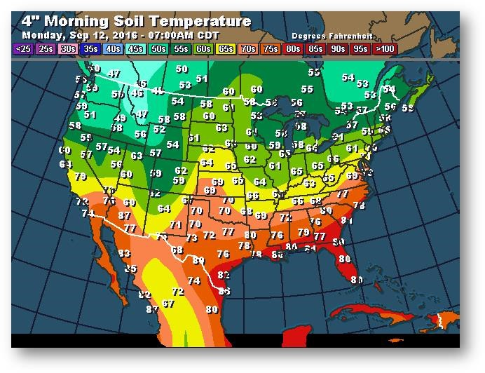 Température du sol en matinée à une profondeur de 4 pouces (degrés Farenheit)