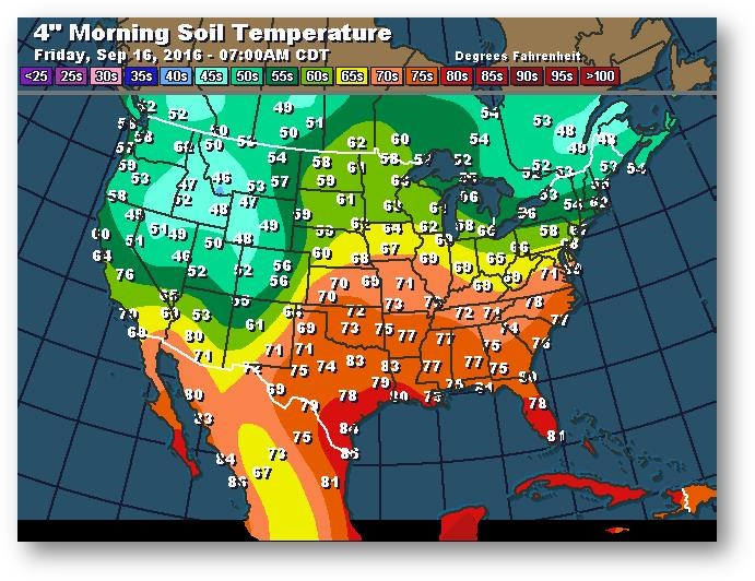 Température du sol en matinée à une profondeur de 4 pouces (degrés Farenheit)