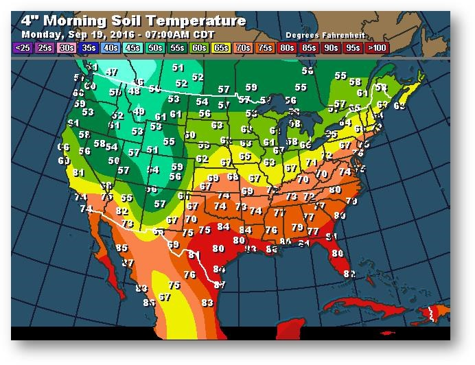 Température du sol en matinée à une profondeur de 4 pouces (degrés Farenheit)