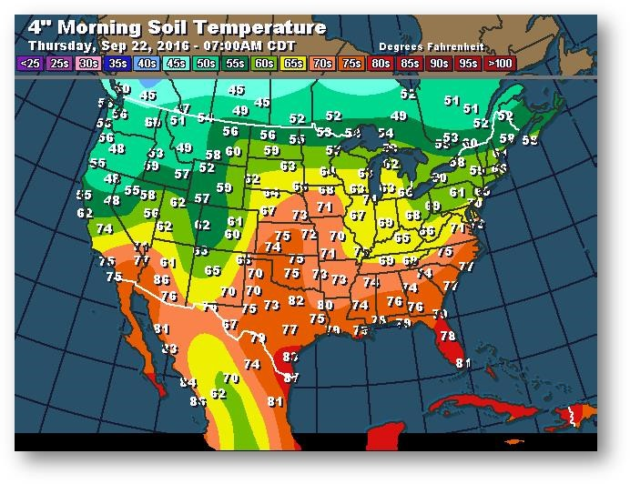 Température du sol en matinée à une profondeur de 4 pouces (degrés Farenheit)