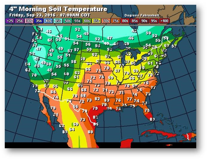 Température du sol en matinée à une profondeur de 4 pouces (degrés Farenheit)