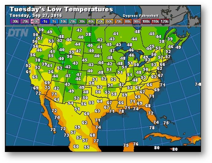 Prévisions des températures les plus basses (degrés Farenheit)