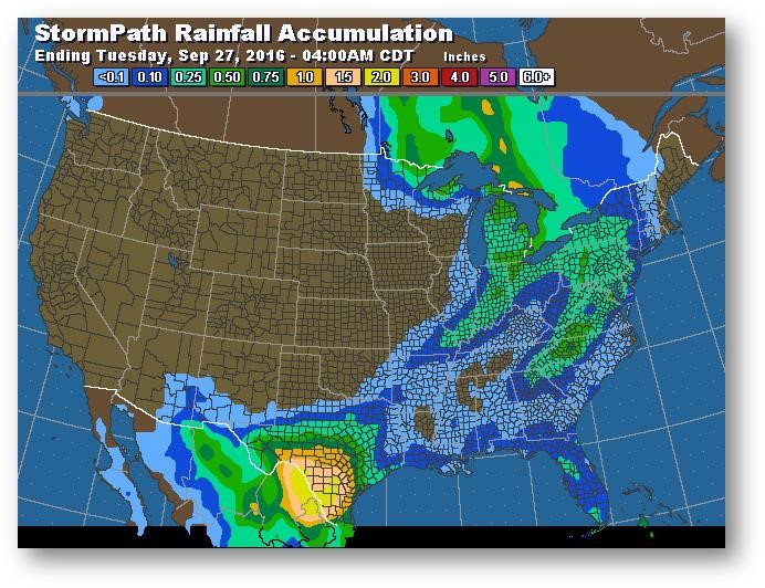 Trajectoire de tempête – Accumulation de précipitations (pouces)