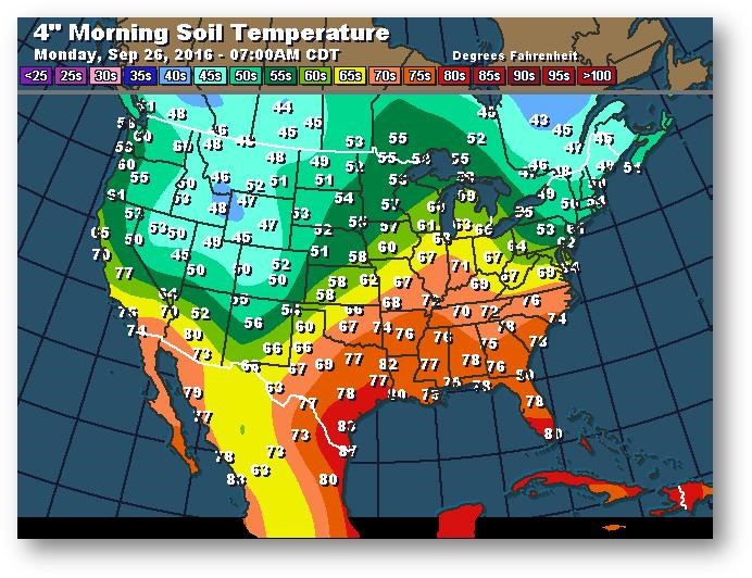 Température du sol en matinée à une profondeur de 4 pouces (degrés Farenheit)