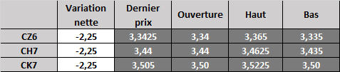 Contrat à terme du maïs à 6 h HAC lundi : en baisse