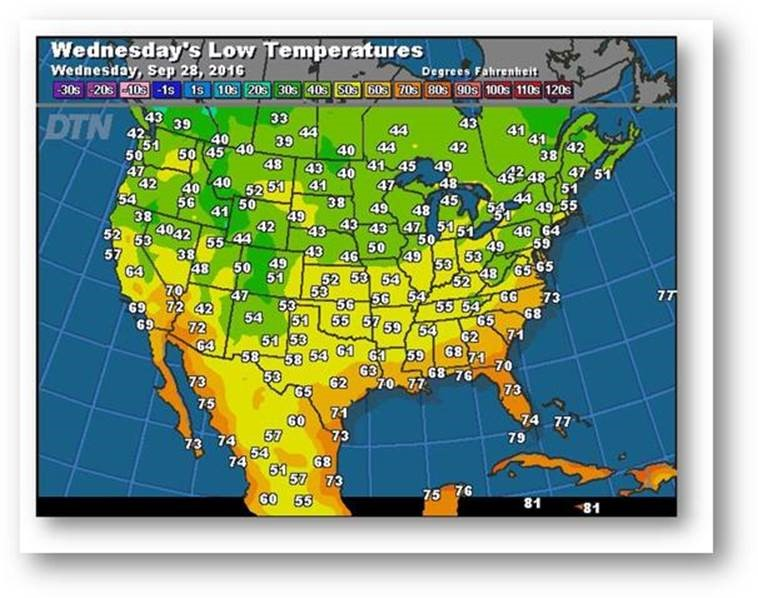 Prévisions des températures les plus basses (degrés Farenheit)