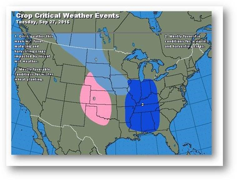 Les prix ont dégringolé hier dans le contexte d'amélioration des prévisions météo pour la récolte et des rapports de rendement positifs. Le contrat à terme de décembre (CZ6) a tombé jusqu'à 3,29$ hier, puis clôturé sous la moyenne mobile à 50 jours et la moyenne mobile à 20 jours. Pour le reste de la semaine, on prévoit seulement quelques précipitations dans toute la Corn Belt; l'Iowa et le Minnesota auront enfin un répit. Sur un horizon de 6 à 10 jours, on attend des précipitations sous la normale à travers la Corn Belt, ce qui permettra une bonne progression de la récolte. Hier soir, on a d'ailleurs indiqué que la récolte était complétée à 15% alors que le résultat était de 16% il y a un an et que la moyenne des dix dernières années est de 18%. Hier, les inspections à l'exportation ont révélé un résultat de 1 336 000 tonnes; le total cumulatif correspond à 7,7% de l'évaluation du USDA. La moyenne hebdomadaire nécessaire est de 1 037 000 tonnes pour atteindre l'évaluation du USDA. Le recul d'hier ne s'est pas poursuivi au cours de la nuit, mais il serait possible de voir un test du creux de la fourchette à 3,15-3,20$.