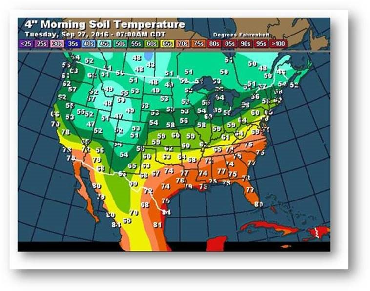 Température du sol en matinée à une profondeur de 4 pouces (degrés Farenheit)
