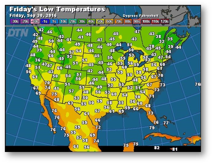 Prévisions des températures les plus basses (degrés Farenheit)