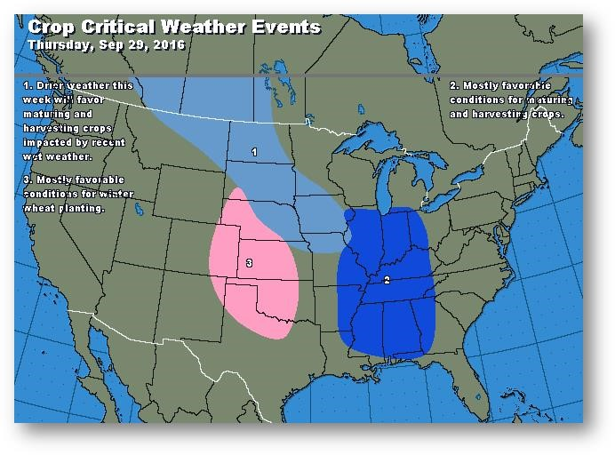 Les prix se sont raffermis au cours de la nuit, profitant du redressement du prix du pétrole hier. Aussi, le marché se positionne en vue de la publication du rapport trimestriel du USDA sur les stocks demain, qui correspond également à la fin de mois. Les conditions météo devraient être favorables dans l'ouest de la Corn Belt alors qu'il devrait y avoir des précipitations au cours des prochains jours dans l'est. La production hebdomadaire d'éthanol en date du 23 septembre était de 989 000 barils/jour, une augmentation par rapport à la semaine précédente et à l'an passé. Les stocks d'éthanol ont aussi grimpé. La fourchette récente devrait se maintenir d'ici la publication du rapport. La prévision moyenne du marché pour les stocks de maïs est de 1,754 milliard de boisseaux, comparativement à 4,722 le 1er juin et 1,731 il y a un an. Même s'il devait y avoir une surprise, les stocks de report ne devraient pas dépasser 2,4 milliards de boisseaux.