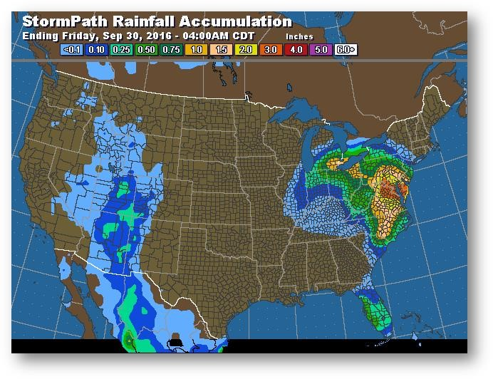 Trajectoire de tempête – Accumulation de précipitations (pouces)
