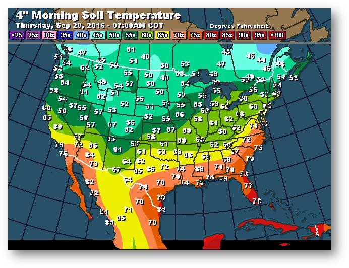 Température du sol en matinée à une profondeur de 4 pouces (degrés Farenheit)