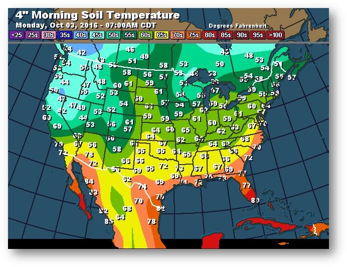 Température du sol en matinée à une profondeur de 4 pouces (degrés Farenheit)