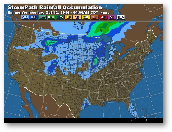 Trajectoire de tempête – Accumulation de précipitations (pouces)