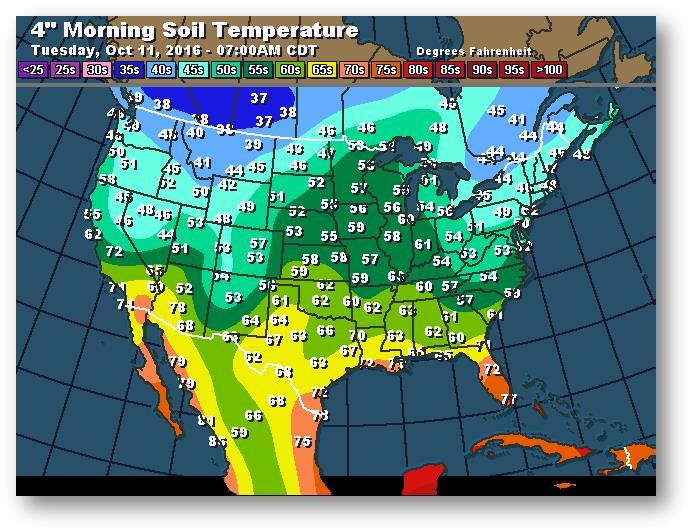 Température du sol en matinée à une profondeur de 4 pouces (degrés Farenheit)