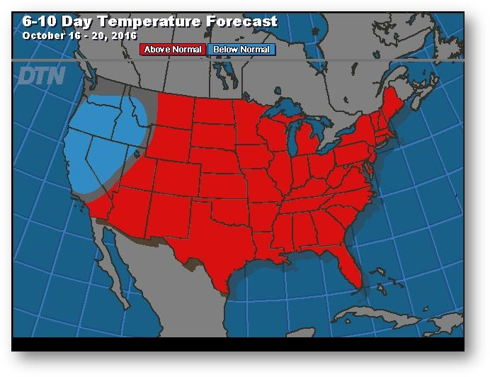 Prévisions de températures pour les 6 à 10 prochains jours