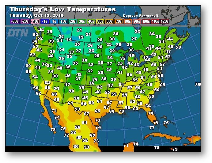 Prévisions des températures les plus basses (degrés Farenheit)