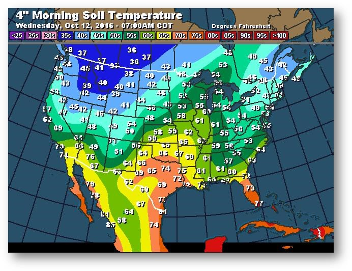 Température du sol en matinée à une profondeur de 4 pouces (degrés Farenheit)