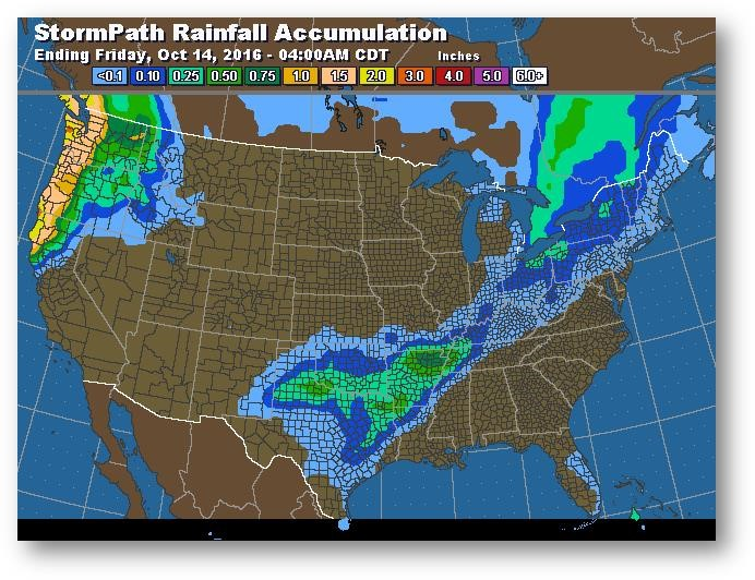 Trajectoire de tempête – Accumulation de précipitations (pouces)