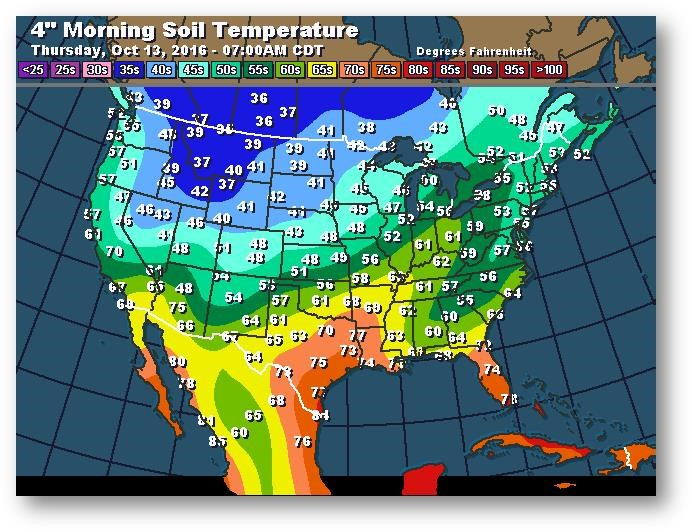 Température du sol en matinée à une profondeur de 4 pouces (degrés Farenheit)